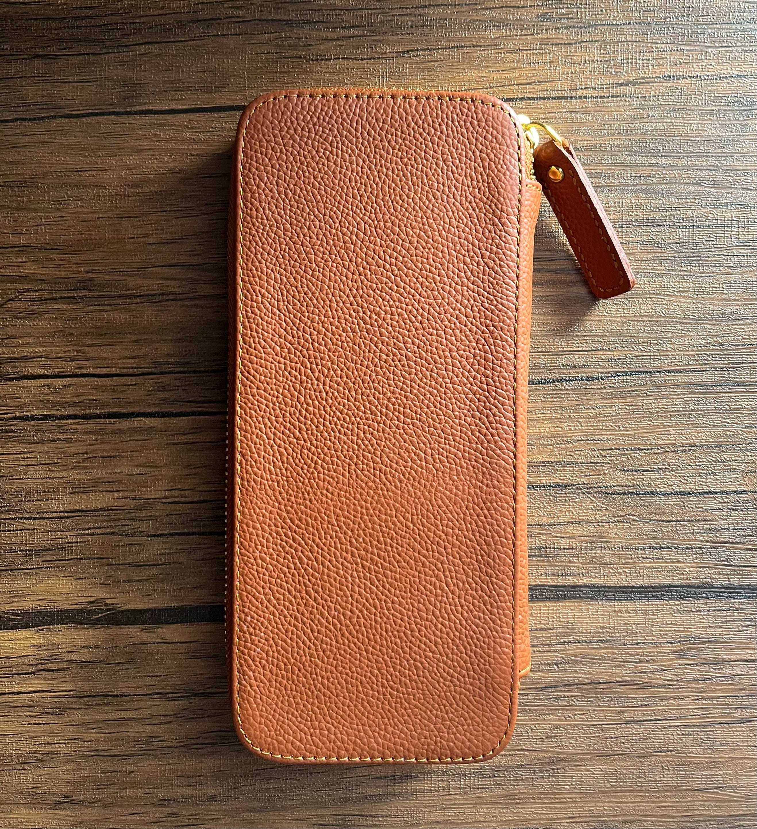 シュリンクレザーで製作したラウンドジップ型ペンケースです。