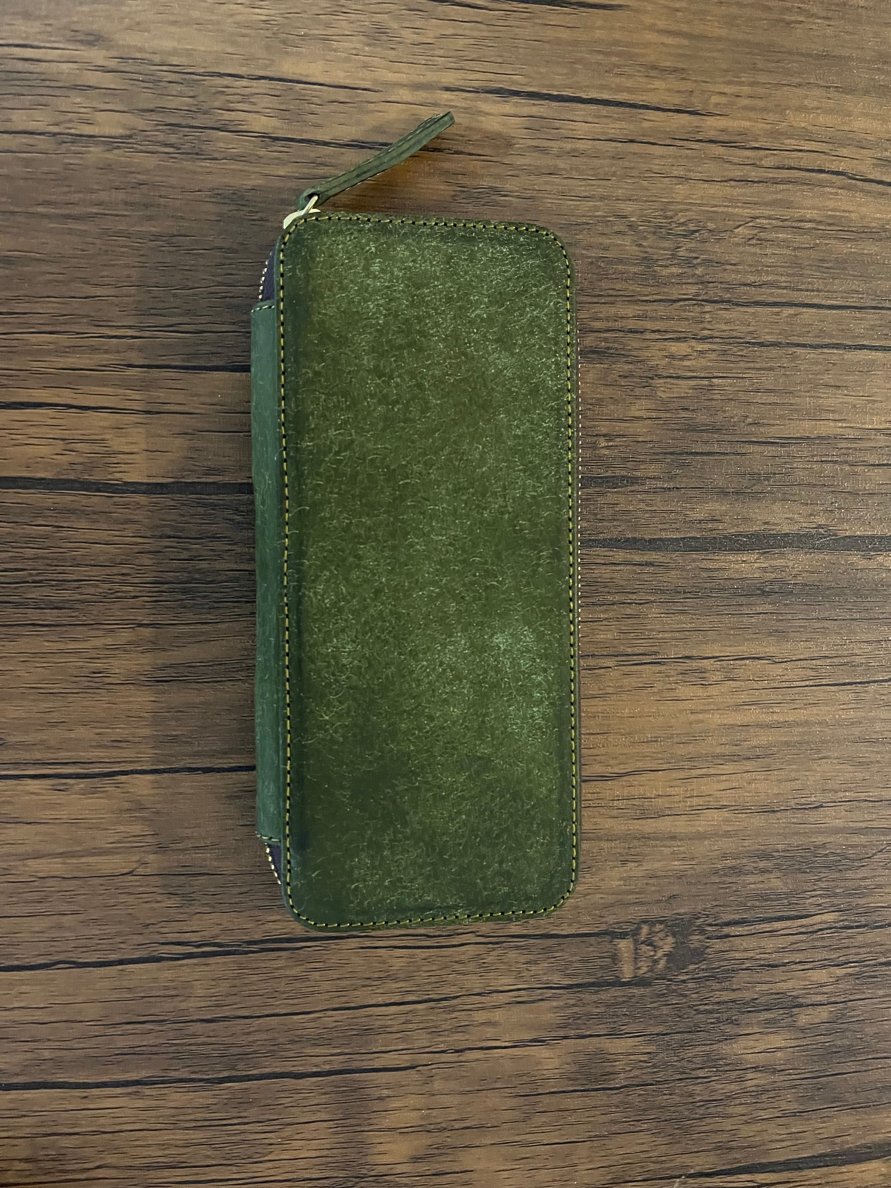 イタリアンレザーで製作したラウンドジップ型ペンケースです。