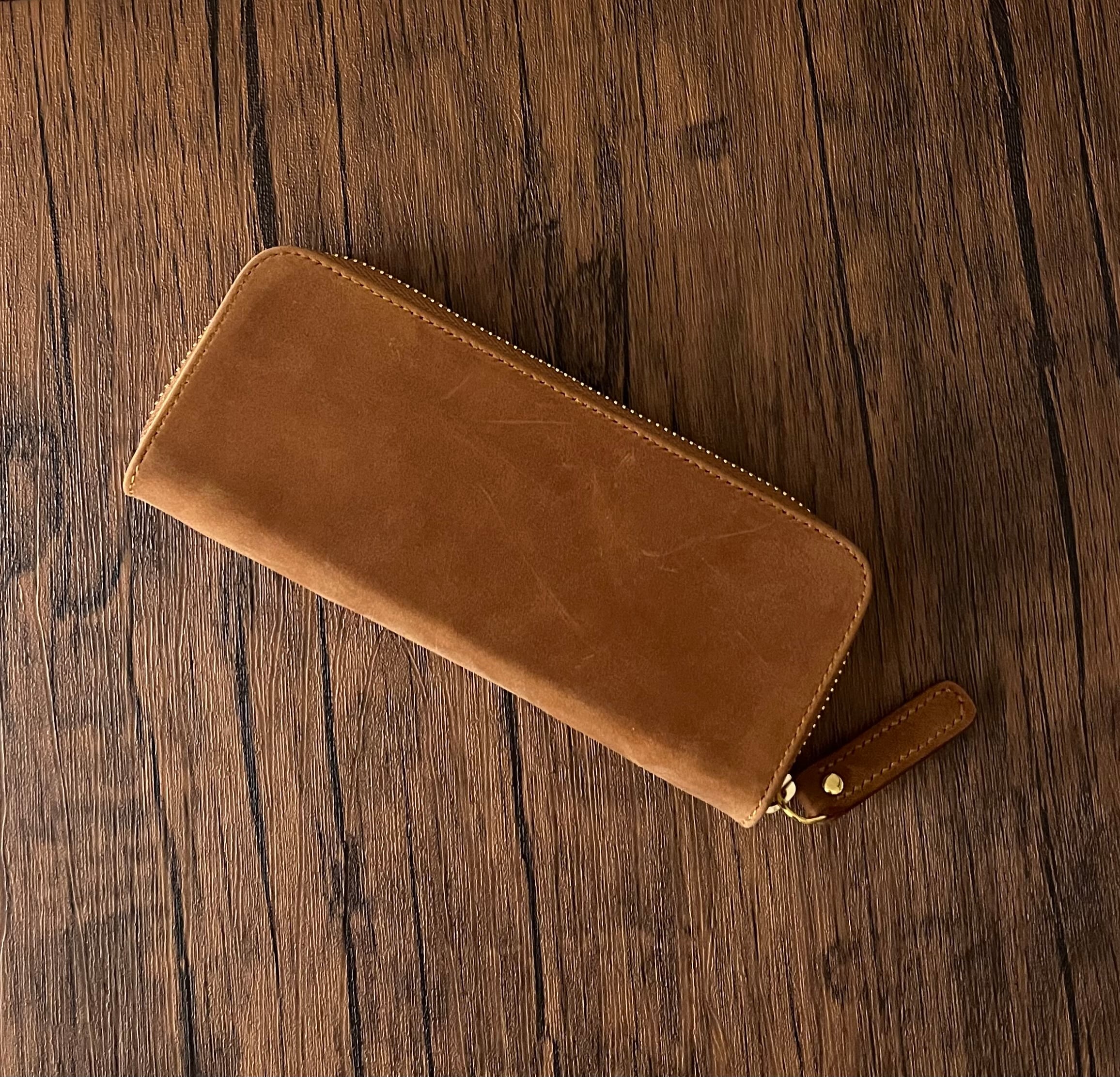 クレイジーホースレザー オリジナルで製作したラウンドジップ型ペンケースです。