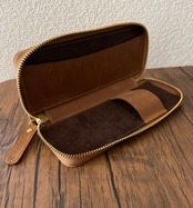 クレイジーホースレザーで製作したラウンドジップ型ペンケースです。