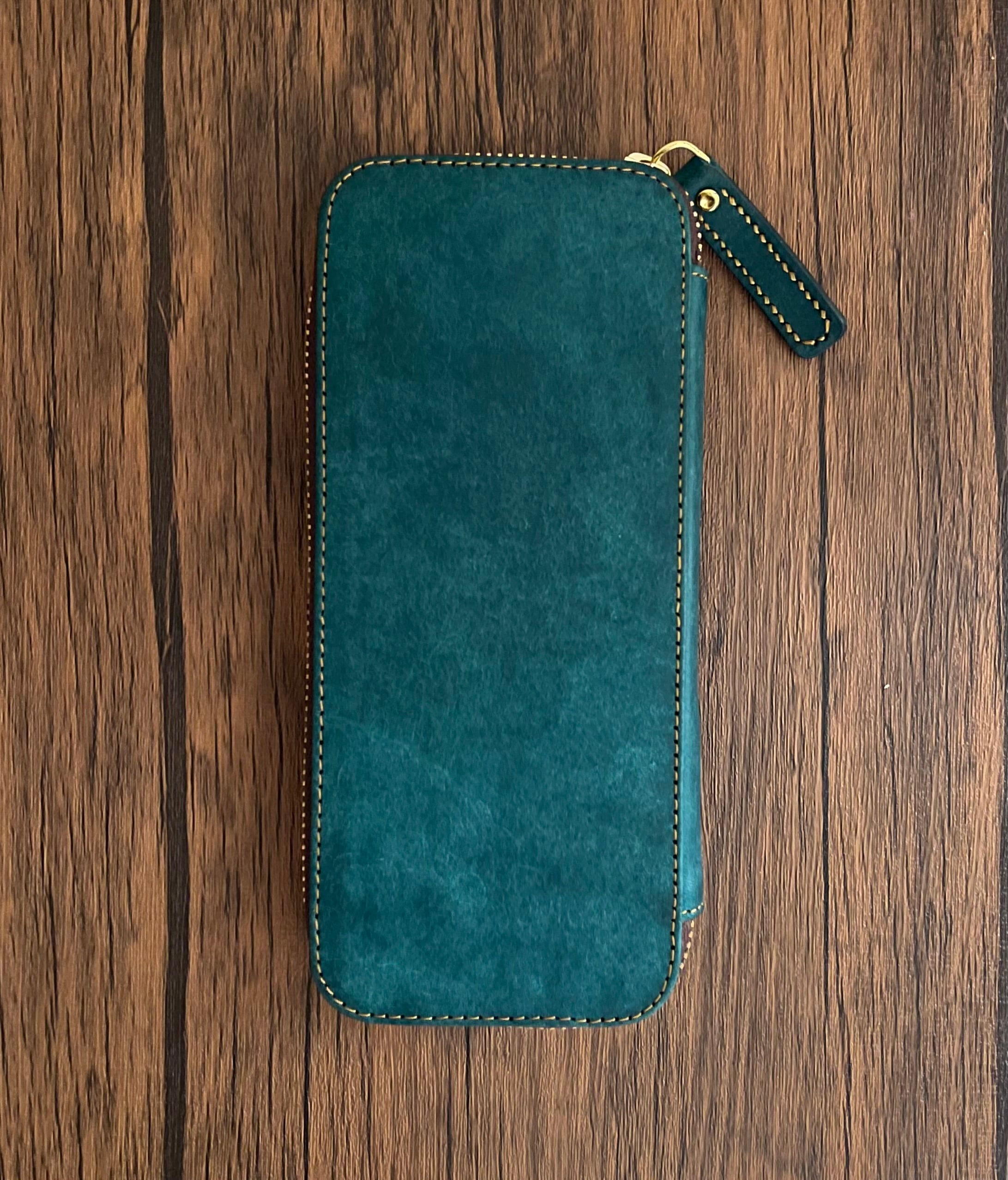 イタリアンレザーで製作したラウンドジップ型ペンケースです。